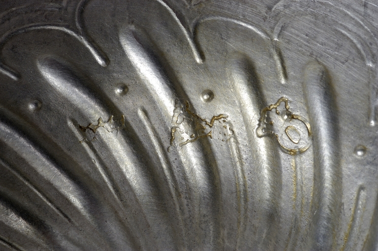Sous le couvercle, les trois poinçons : de haut en bas le poinçon de maître, le poinçon de charge et le poinçon de communautéImmatriculation