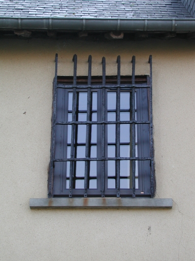 Façade nord : détail de la fenêtre à grilleImmatriculation