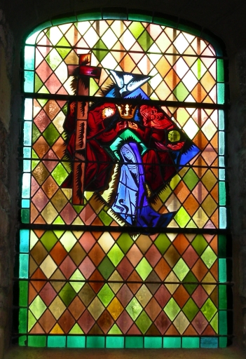 Verrière 0, 1, 2, 6, 8, 10, 12 : Assomption ; Couronnement de la Vierge ; Sainte Famille ; Annonciation ; Immaculée conception,