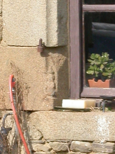 Décor sculpté à la base du chanfrein de la fenêtreImmatriculation