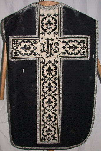 Ornement noir 4 : chasuble, bourse de corporal, étole, manipule, voile de calice,