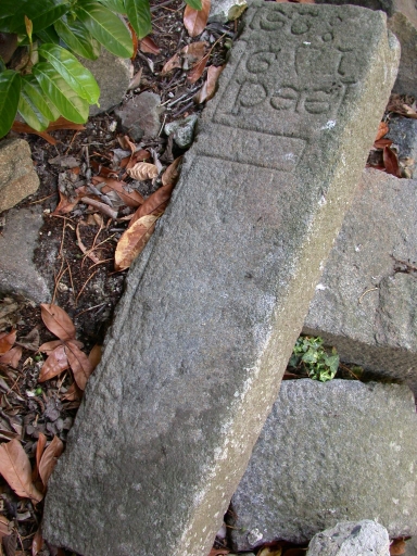 Dalle funéraire de Gui Peret ? (près de la chapelle extérieure),