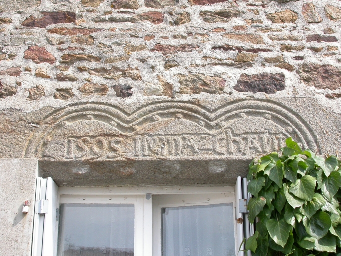 Façade sud : détail de l'inscription du linteau de l'ancienne porteImmatriculation
