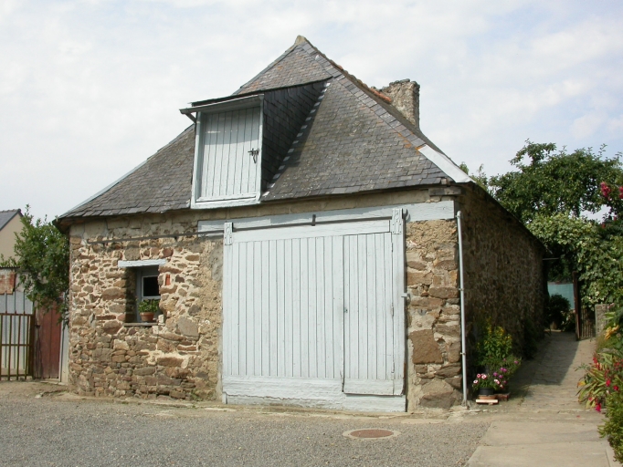 Vue des élévations nord et est du bâtiment abritant la grange à l'avant et le fournil à l'arrièreImmatriculation