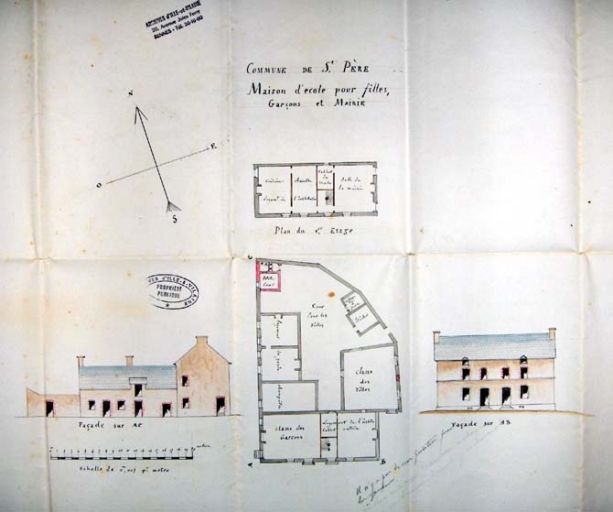 Projet de 1856 : plans et élévations de l'école et de la mairieImmatriculation