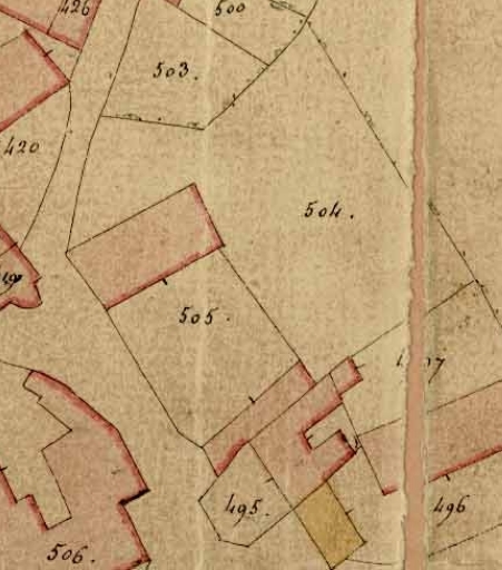 Vue du bâtiment d'habitation sur le cadastre de 1848 (parcelle 505)Immatriculation