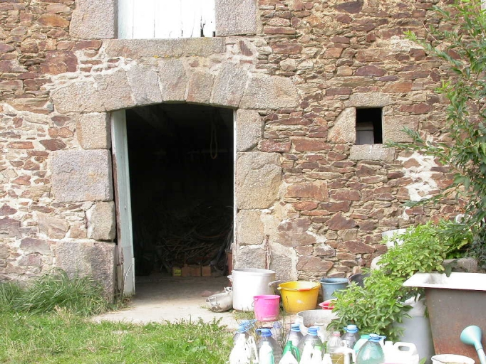 Elévation sud-est de l'étable : détail de la porte avec linteau à claveaux et du jourImmatriculation