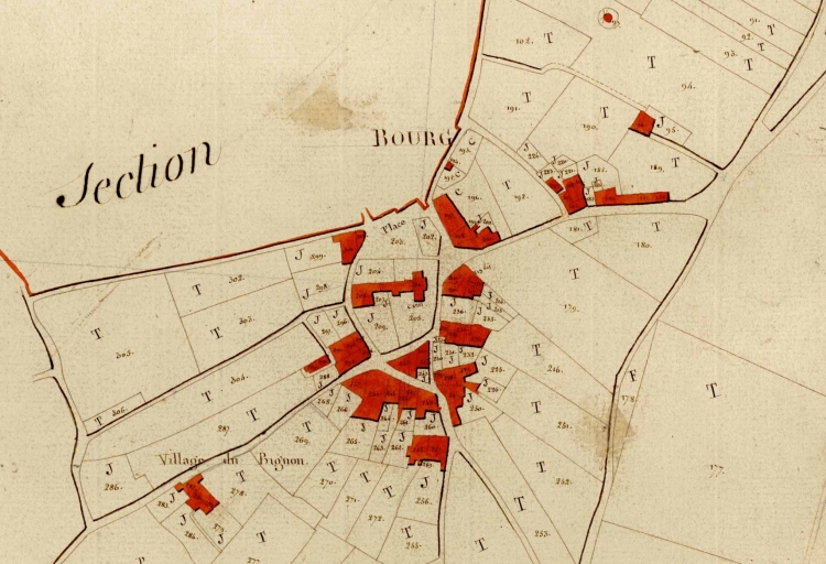 Parties nord-est et sud du bourg sur le cadastre de 1809Immatriculation