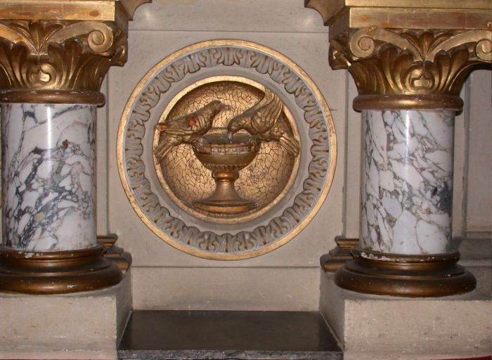 Autel, décor latéral droit : Colombes au caliceImmatriculation