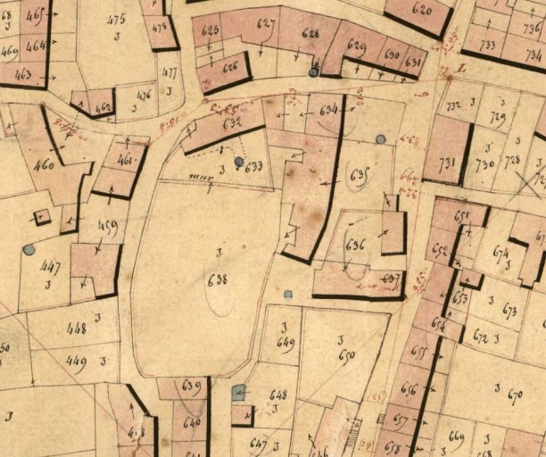 Extrait du cadastre de 1848, section du bourg, parcelle 638Immatriculation