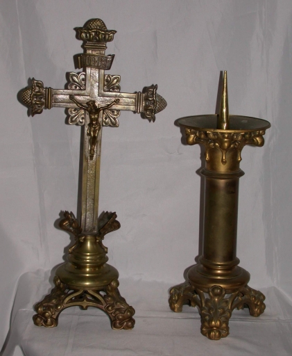 Garniture d'autel 2 : croix et 6 chandeliers,