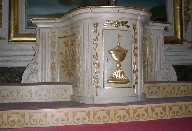 Autel et tabernacle du maître-autel, église paroissiale Saint-Pierre (Dompierre-du-Chemin fusionnée en Luitré-Dompierre en 2019),
