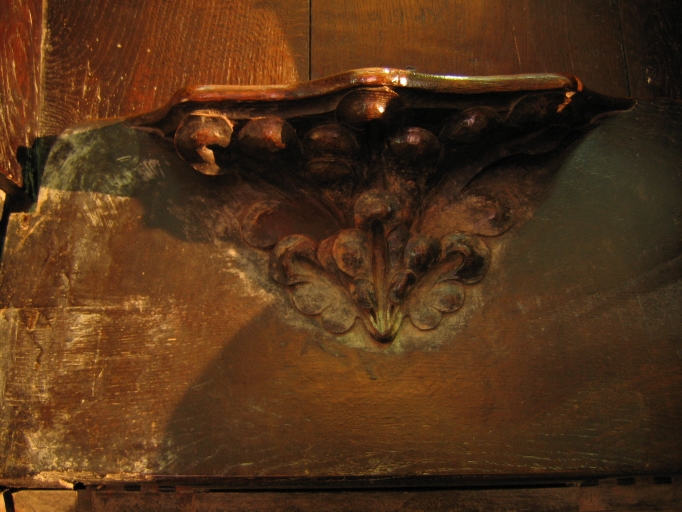 Miséricorde : ornement végétal, feuilles à bords arrondis.Immatriculation