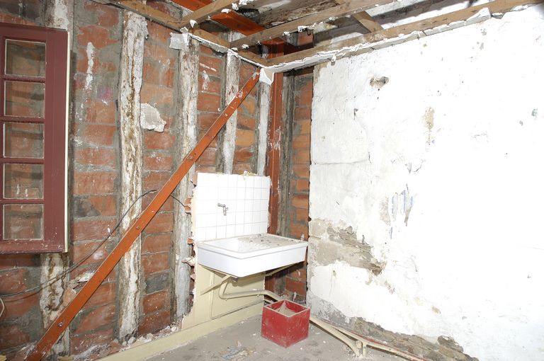 2e étage, mur est, restauration du pan de bois en briques modernes vers 1950Immatriculation
