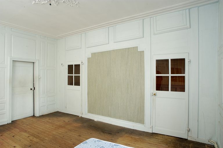 Etage, chambre ouest, lambris et alcove du mur est.Immatriculation