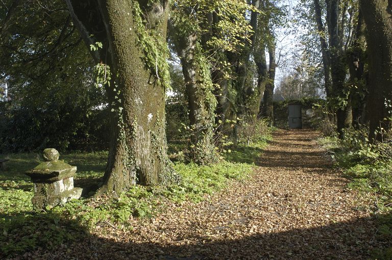 Allée sud à l'emplacement de l'ancienne église.Immatriculation