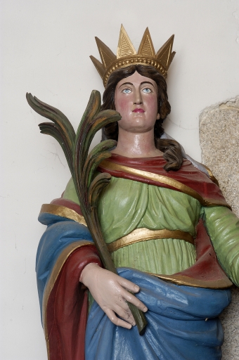 Ensemble de deux statues : Sainte Catherine d'Alexandrie ; Saint Amphibal, église paroissiale Saint-Alban (Inguiniel),