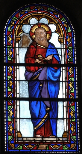 Ensemble de 4 verrières figurées : Sacré-Coeur ; Vierge à l'Enfant ; Saint Alban ; Sainte Catherine,
