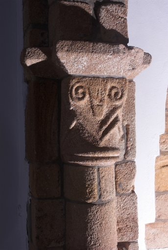 Arcade de l'abside: Détail sculpture sur chapiteau nord.Immatriculation