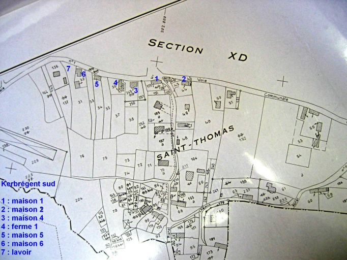 Kerbrégent sud. Plan de localisation des oeuvres étudiées et repérées. Plan cadastral 1987, section XEImmatriculation