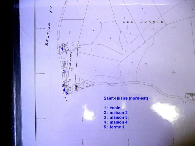 Saint-Hilaire, partie nord-est. Plan de localisation des oeuvres étudiées et repérées. Plan cadastral 1987, section XSImmatriculation