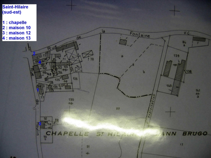 Saint-Hilaire, partie sud-est. Plan de localisation des oeuvres étudiées et repérées. Plan cadastral 1987, section XTImmatriculation