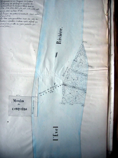 Modification du règlement d'eau du moulin du Cosquéro. Plan, 18 août 1871 (AD 56, S 1119)Immatriculation