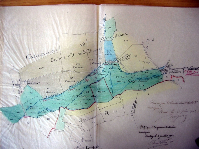 Moulin du Gouave. Plan du site et de ses abords. 2 juillet 1902 (AD Morbihan, S 1911)Immatriculation