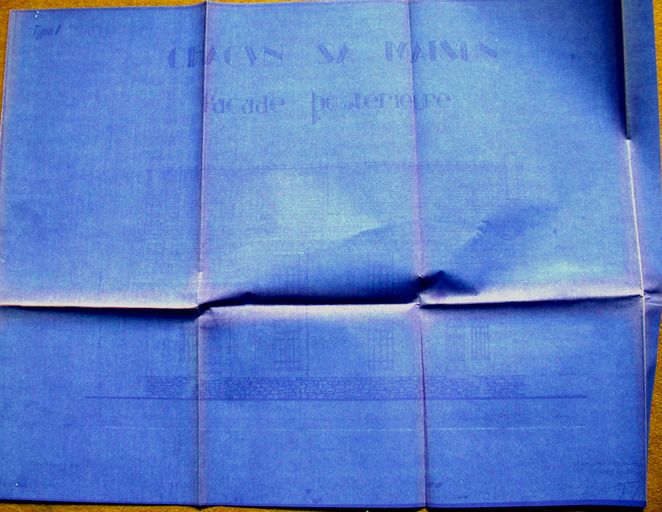 Groupe 1. Elévation postérieure, par Gemain, 1930. Fonds HLM Vannes.Immatriculation
