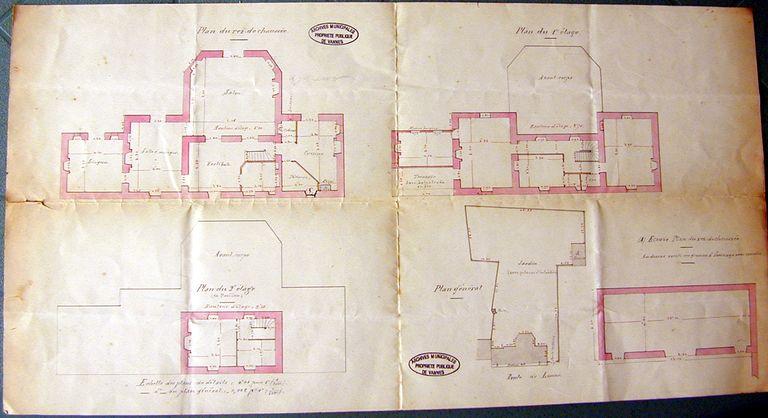 Plan au sol, plan de l'étage et du 2d étage. AM Vannes 1O216 voirie alignement.Immatriculation