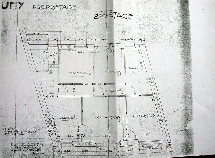 Plan du 2e étage par Le Cloërec, 1936. Fonds privé.Immatriculation