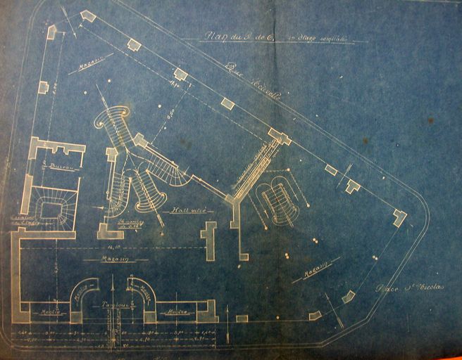 Projet de construction du magasin André décembre 1920 : plan du rez-de-chaussée. AM Vannes 2D2 Dossiers des séances du conseil municipal.Immatriculation
