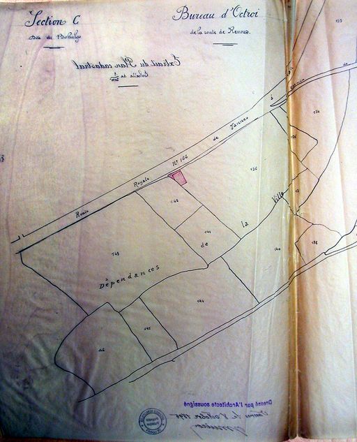 Extrait du plan cadastral du bureau d'octroi de la route de Rennes. AM Vannes 1M197 Bureaux d'octroi.Immatriculation