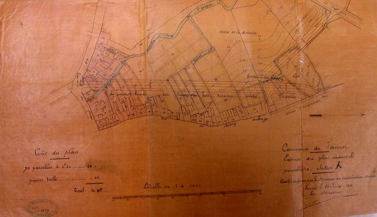 Avant-projet de la construction d'une voie entre la place Saint-Nicolas et l'avenue Saint-Symphorien avec embranchement sur l'avenue de la gare par Lamarzelle, 1881. AM Vannes 1D2 séances du Conseil municipal 1920-1926.Immatriculation