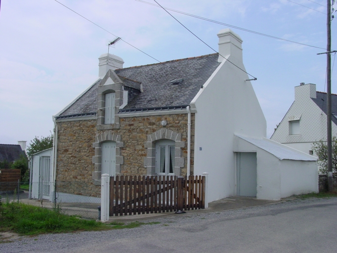 Vue générale sud-est de la maison repérée. L'enduit de façade a disparu.Immatriculation