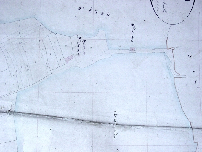 Plan cadastral de 1845, section A. Moulin à marée dit moulin des Oies et la ferme à l'ouest.Immatriculation