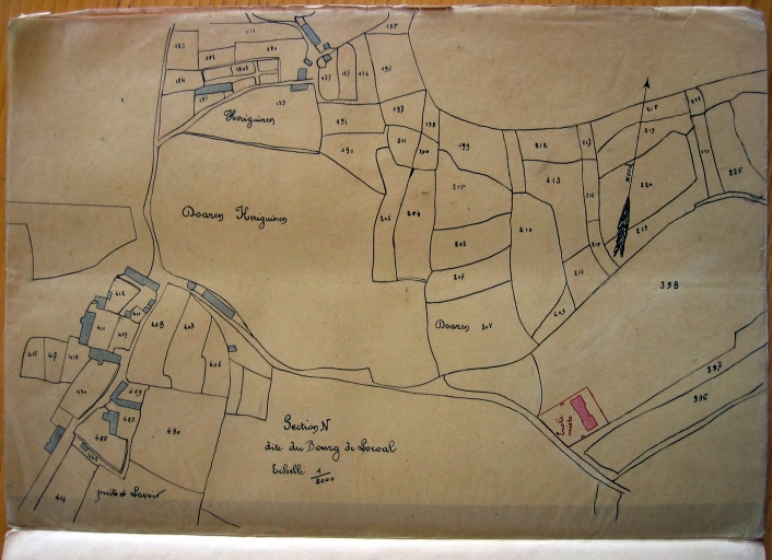 Construction d'une école mixte à Locoal : plan du bourg, 1909, signé Jasseron FilsImmatriculation