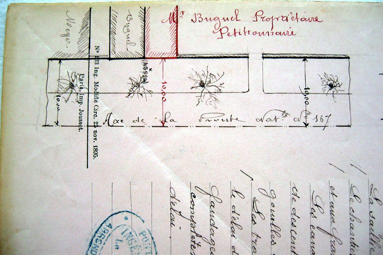 Demande d'alignement pour l'agrandissement de la dépendance de Maître Buguel faite par Normand, 7 juin 1898. AD Morbihan S 246.Immatriculation