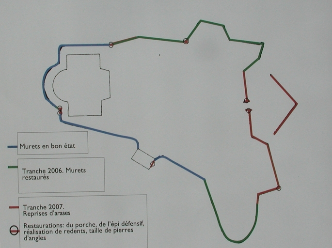 Etat de restauration des murs d'enceinte du fort en 2006 (Nicole Bihan)Immatriculation