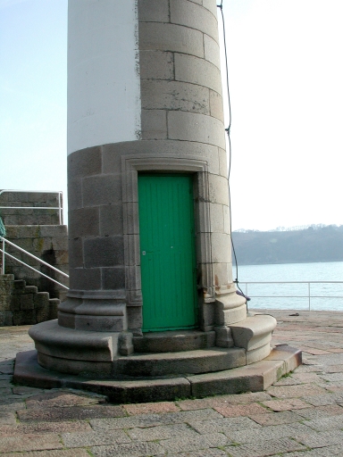 Vue de la base cylindrique très ouvragé du fanal, en pierre de tailleImmatriculation