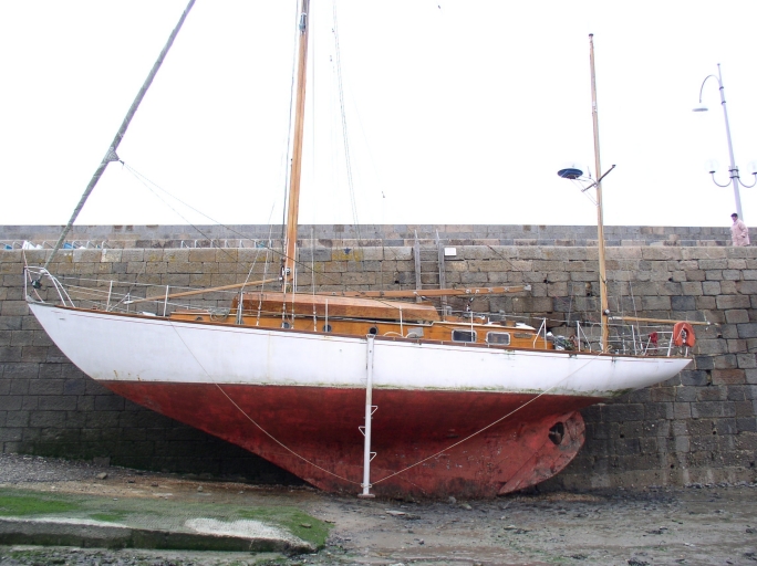 Vue des formes de la coque de l''Agathe à l'échouage (Alain Guillaume)Immatriculation