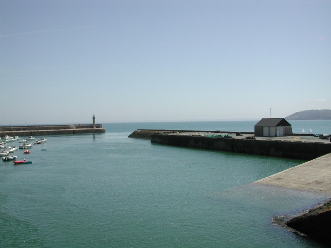Vue générale de l'avant-port avec les deux jetées : remarquer l'élargissement de l'ancienne estacade et le mur de quai bétonnéImmatriculation