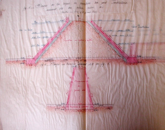 Calque couleur : coupe de la digue de protection, 1899 (AD 22)Immatriculation