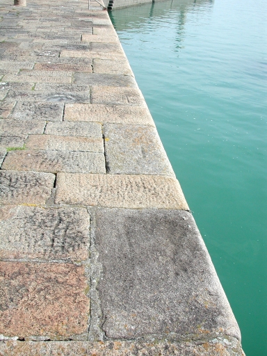 Vue en détail de l'agencement des pierres taillées au niveau de l'arête du quaiImmatriculation