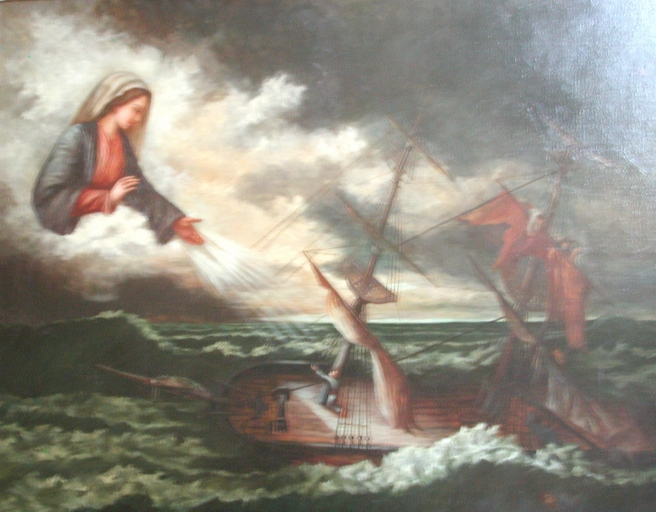 Ex-voto, huile sur bois représentant le sauvetage de la Perle, le 287 mai 1836, en la chapelle de LanticImmatriculation