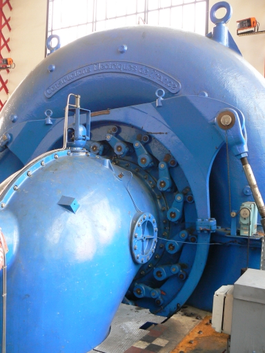 Turbine hydraulique de type Francis et alternateur (Mûr-de-Bretagne fusionnée en Guerlédan en 2017),