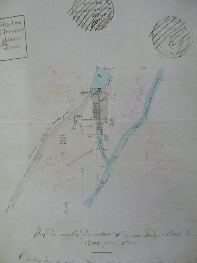 Plan du mouolin et de ses abords, 13 décembre 1860. AD Côtes-d'Armor 84S 7Immatriculation