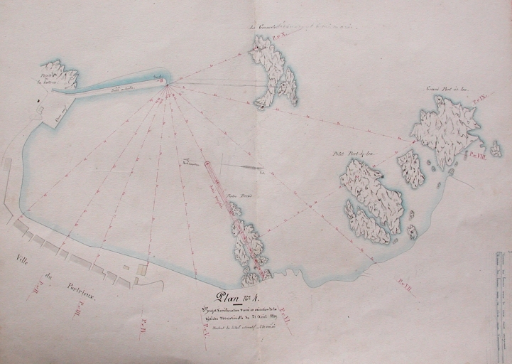 Plan n° 4 : projet d'amélioration du port dressé en exécution en 1849 : réalisation de la jetée du Tertre Denis (AD 22)Immatriculation