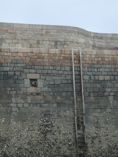 Echelle de la jetée en fer forgé et anneau d'amarrageImmatriculation