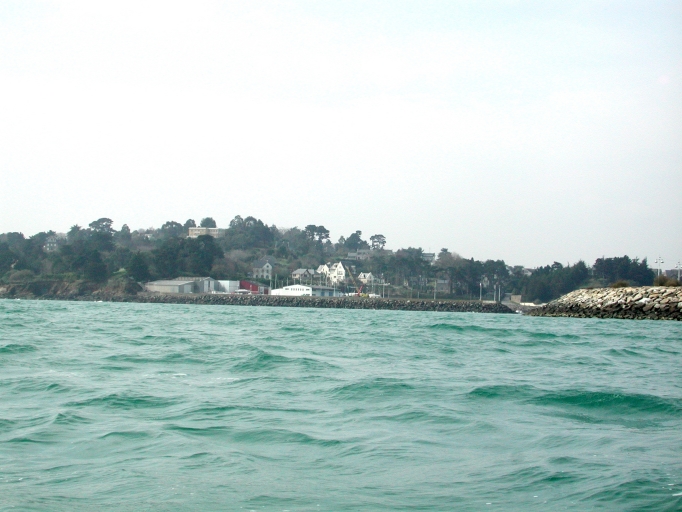 Vue de la digue du côté du large de Port Es Leu et des aménagements du front de portImmatriculation